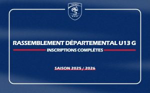 Pour information, il n'est plus possible d'inscrire vos joueurs U13G pour le Rassemblement Départemental U13G du mercredi 8 octobre. En effet, le rassemblement est complet à cette date. Nos éducateurs se déplacent sur l'ensemble du département pour observer l'ensemble des joueurs U13.