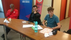 Avant la pause déjeuners, nous avons eu l’honneur d’avoir la visite des deux candidats fédéraux en pleine préparation de l’examen théorique : Monsieur Romain HENNACHE et Monsieur Louison OLIVIER exposant à nos jeunes leur préparation et leur rigueur pour cette grande échéance.