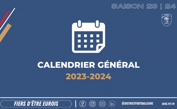 Le calendrier général de la saison 2023-2024 est désormais disponible sur le site du District de l’Eure de Football.