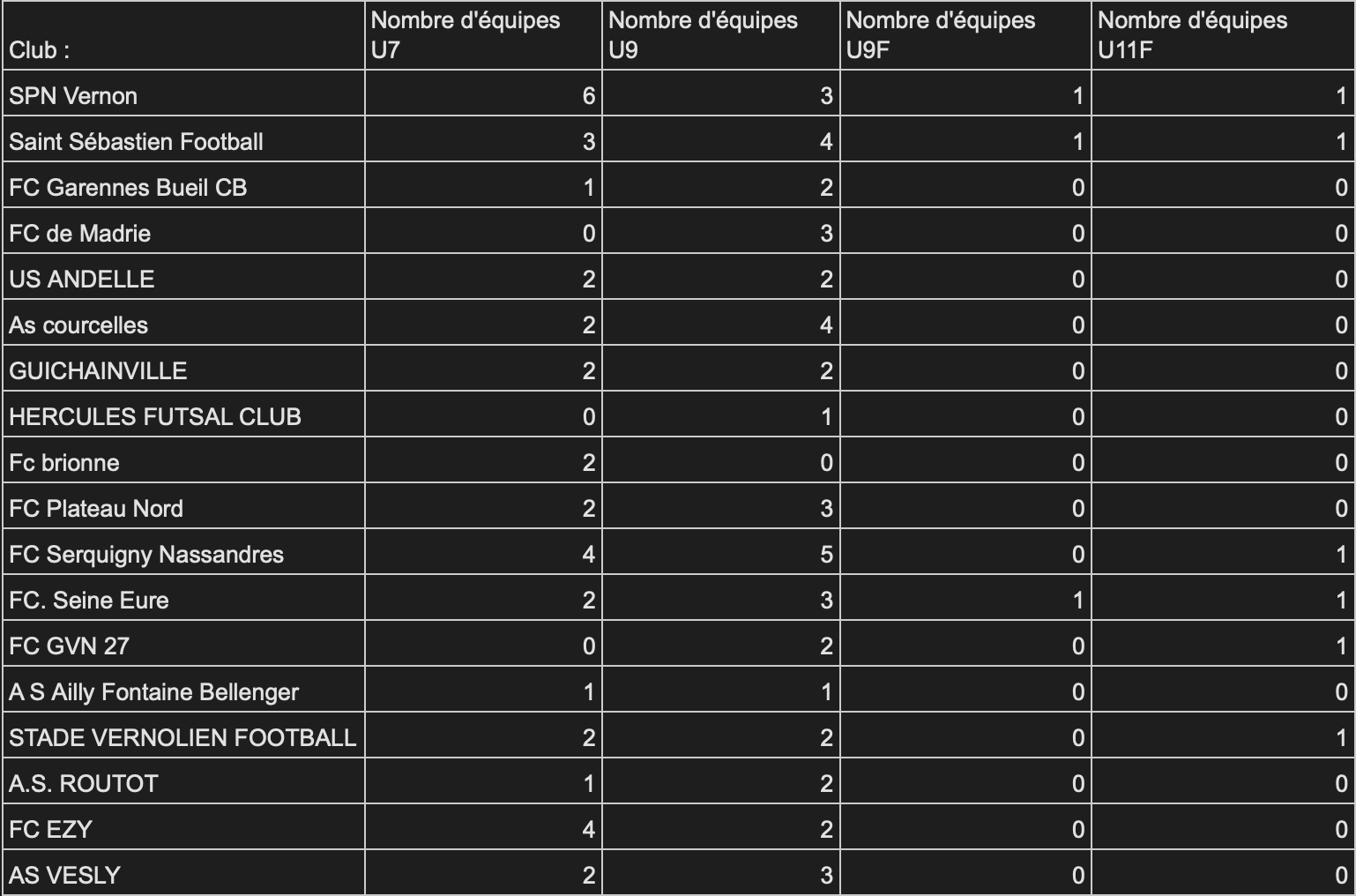 Retrouvez ci-dessous le tableau récapitulatif des équipes inscrites.