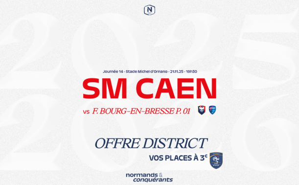 - SM Caen – F. Bourg-en-Bresse 01 : Vendredi 21 Novembre 19H30